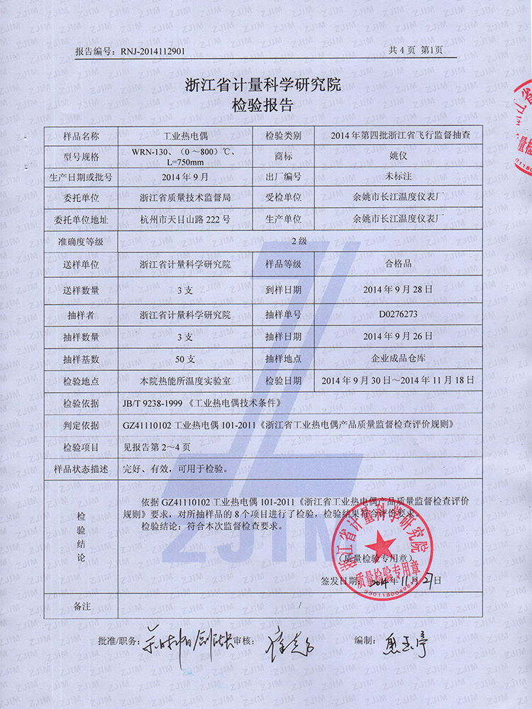2014年省檢報(bào)告(工業(yè)熱電偶)